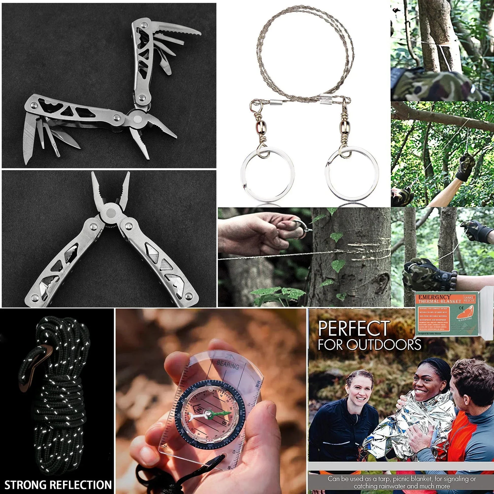 Designed for the prepared individual, this all-in-one survival kit is your complete emergency solution for natural disasters, power outages, wilderness emergencies, evacuations, or any unexpected crisis. Compact yet comprehensively stocked, equiped with everything needed to survive and thrive when help may not arrive quickly.